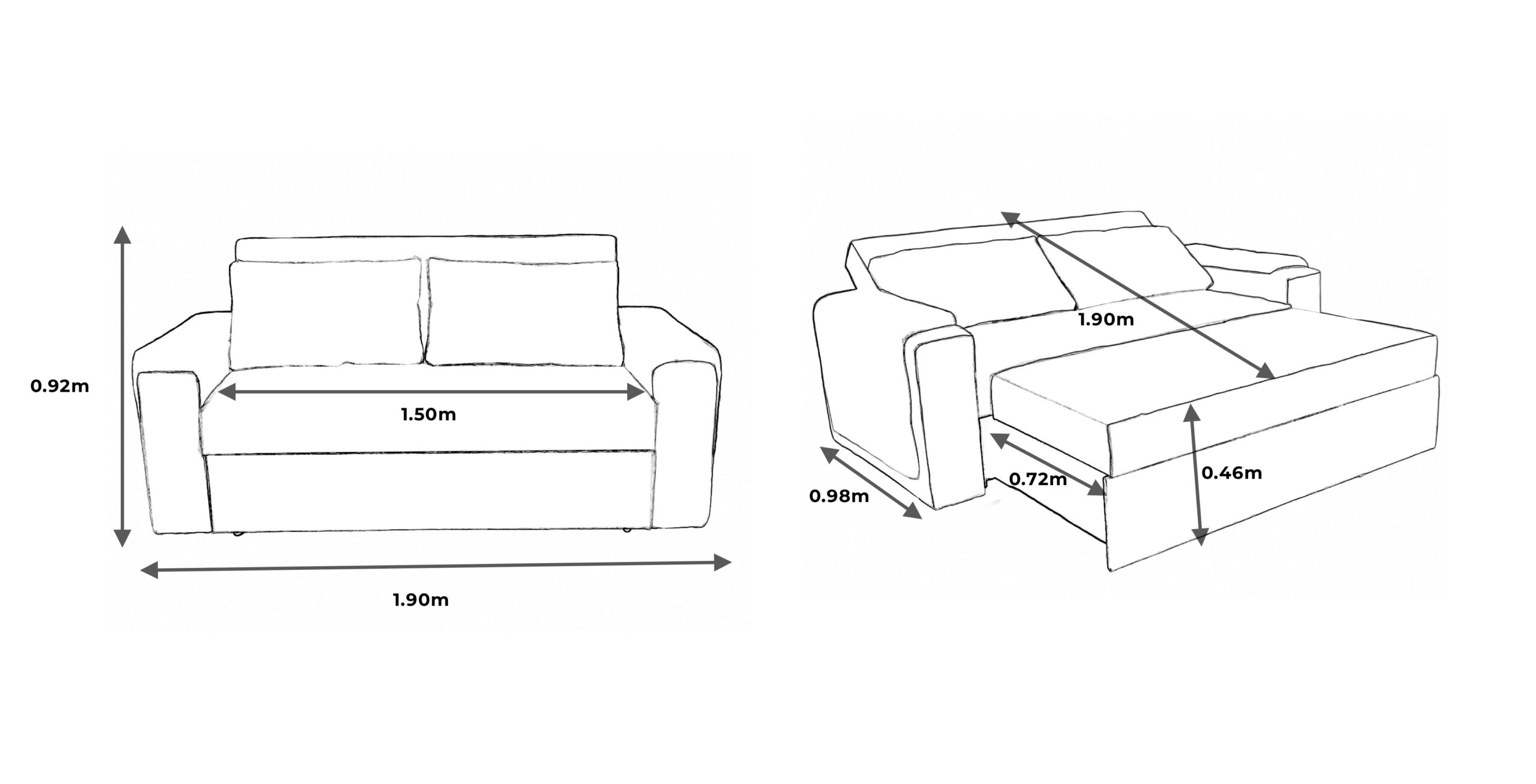 | Medidas | · Cerrado: 98 cm de profundidad – 92 cm de altura – 190 cm de ancho. · Abierto: 190 cm de profundidad – 92 cm de altura – 190 cm de ancho. |